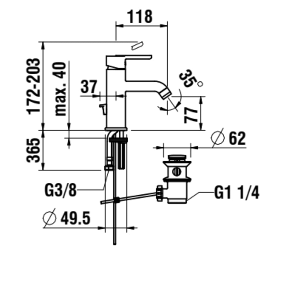 Laufen Lua egykaros mosdó csaptelep Eco+ húzórudas lefolyószeleppel, króm H3110810041141