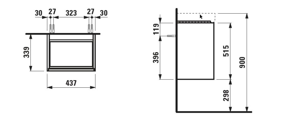 Laufen Meda alsószekrény 45 cm, 1 ajtóval, bal oldali zsanér, H815111 mosdóhoz , matt fehér H4215410112601