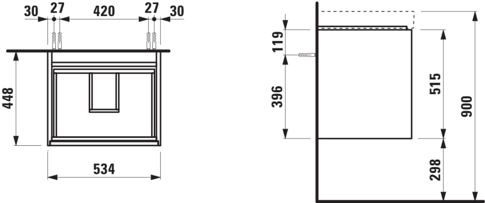 Laufen Meda alsószekrény 550 mm, 2 fiókkal, H810112 mosdóhoz, vad tölgy H4215620112671Laufen