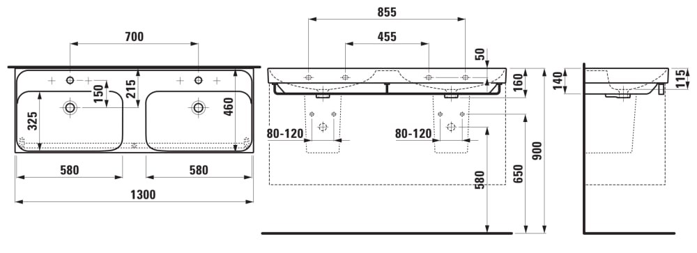 Laufen Meda két medencés mosdó 130x46 cm, fehér H8141120001041Laufen