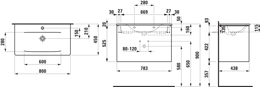 Laufen Palace 80 mosdószekrény mosdóval, matt fehér H8607052601041