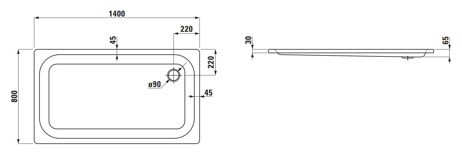 Laufen Platina 140x80 cm extra lapos zuhanytálca csúszásgátló felülettel, fehér H2150066000401