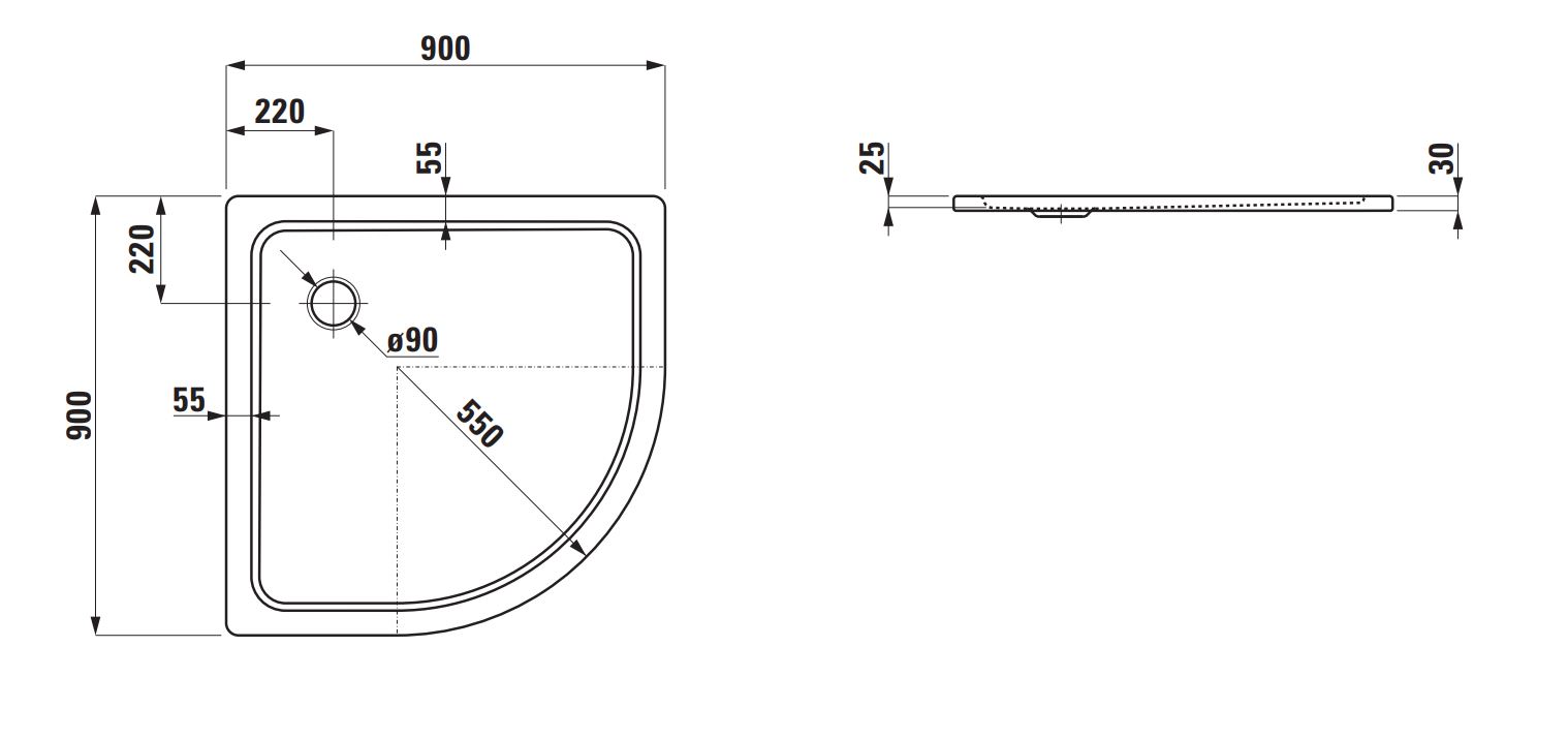 Laufen Platina 90x90 cm negyedköríves extra lapos zuhanytálca, fehér H2150080000401Laufen