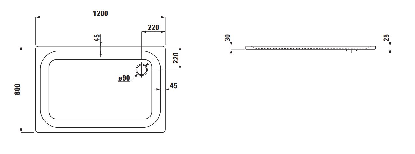 Laufen Platina 120x80 cm extra lapos zuhanytálca, fehér H2150050000401Laufen