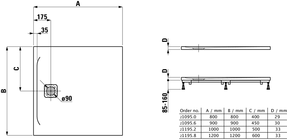 Laufen Platina 100x100 cm extra lapos zuhanytálca, fehér H2150040000401
