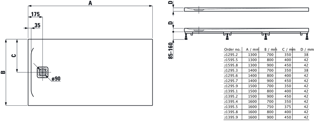 Radaway Doros Stone F 160x90 cm szögletes zuhanytálca, antracit SDRF1690-01-64S