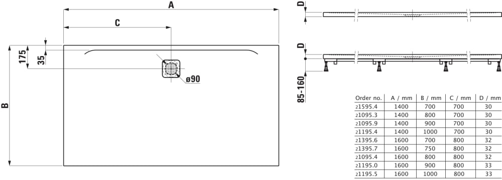 Radaway Doros Stone F 160x90 cm szögletes zuhanytálca, antracit SDRF1690-01-64S