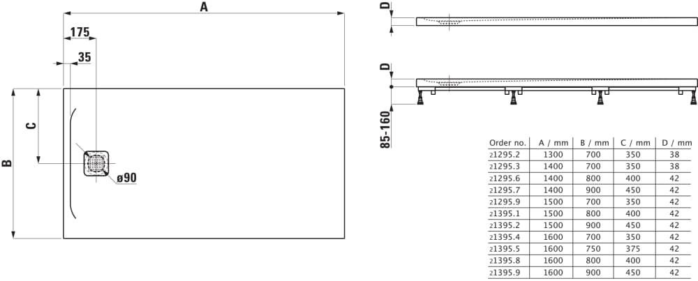 Radaway Doros Stone F 160x90 cm szögletes zuhanytálca, antracit SDRF1690-01-64S