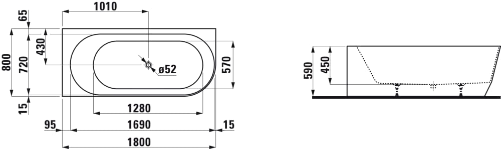 Laufen Pro 180x80 cm kád, balos sarok változat Marbond anyag, lábbal együtt H2449560000001 | SzaniterPlaza.hu - Szaniter webáruház, fürdőszoba felszerelés, csaptelepek, mosdók, zuhanyok, akciós árak.