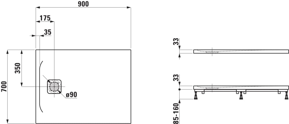 Laufen Pro 90x70 cm zuhanytálca, fehér H2169560000001