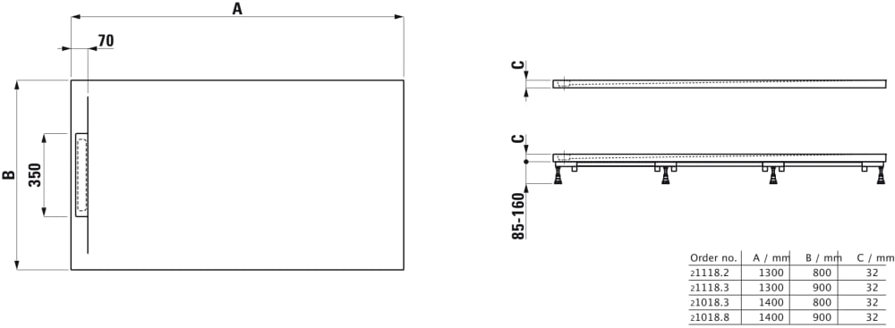 Laufen Platina 140x80 cm extra lapos zuhanytálca, fehér H2150060000401