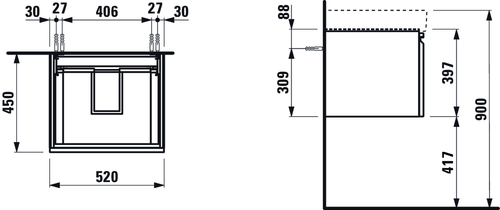 Laufen Pro S alsószekrény 810962 tip. mosdóhoz 1 fiókkal és belső fiókkal, matt fehér H4833520964631Laufen