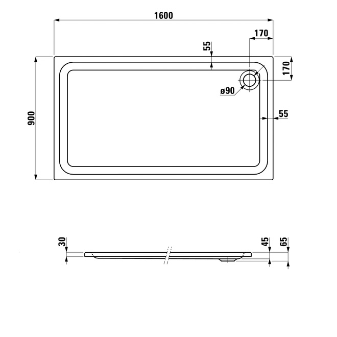 Laufen SOLUTIONS 160x90 cm zuhanytálca H2145080000001Laufen