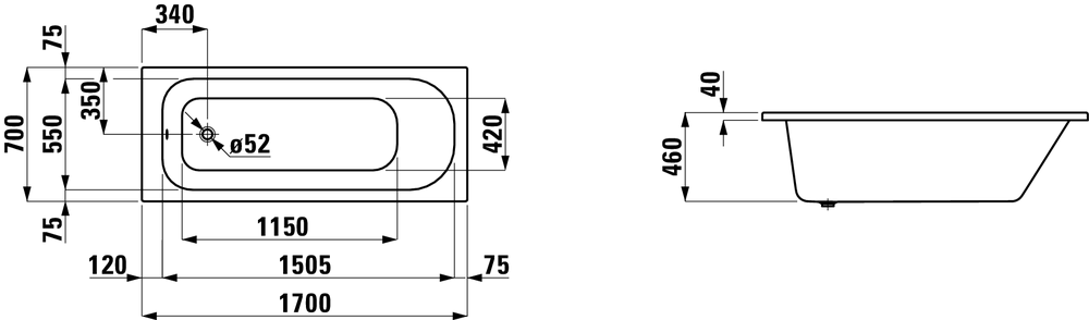 Laufen SOLUTIONS 170x70 cm egyenes kád H2225000000001Laufen