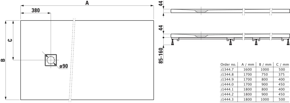 Laufen SOLUTIONS 160x90 cm zuhanytálca H2145080000001