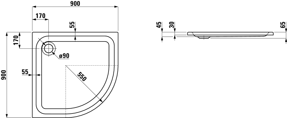 Laufen SOLUTIONS 90x90 cm negyedköríves zuhanytálca H2135020000001