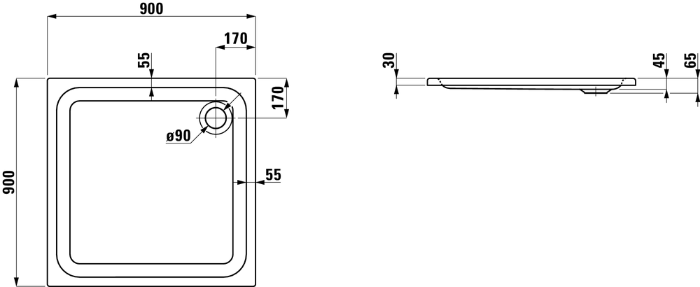 Laufen SOLUTIONS 90x90 cm zuhanytálca H2115020000001