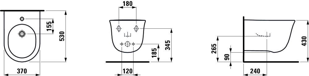 Laufen Pro fali bide oldalsó csatlakozással H8309510003041 (8.3095.1.000.304.1)