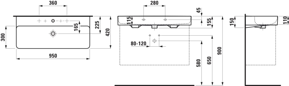 Laufen Val mosdó 95x42 cm, fehér H8102870001041