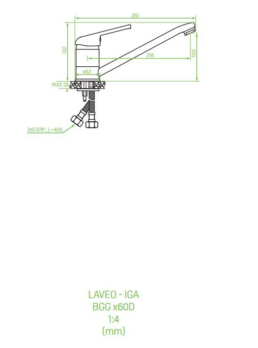 Laveo IGA álló mosogató csaptelep, szemcsés fekete BGG_760DLaveo