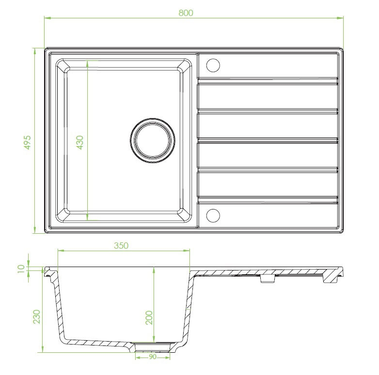 Invena Tesalia egy medencés fél csepptálcás gránit mosogató, fekete, króm leeresztő AZ-01-042-B