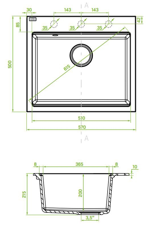 Ferro MEZZO II gránit mosogató 1-medencés, átm.51, grafit shine DRGM1/51HA