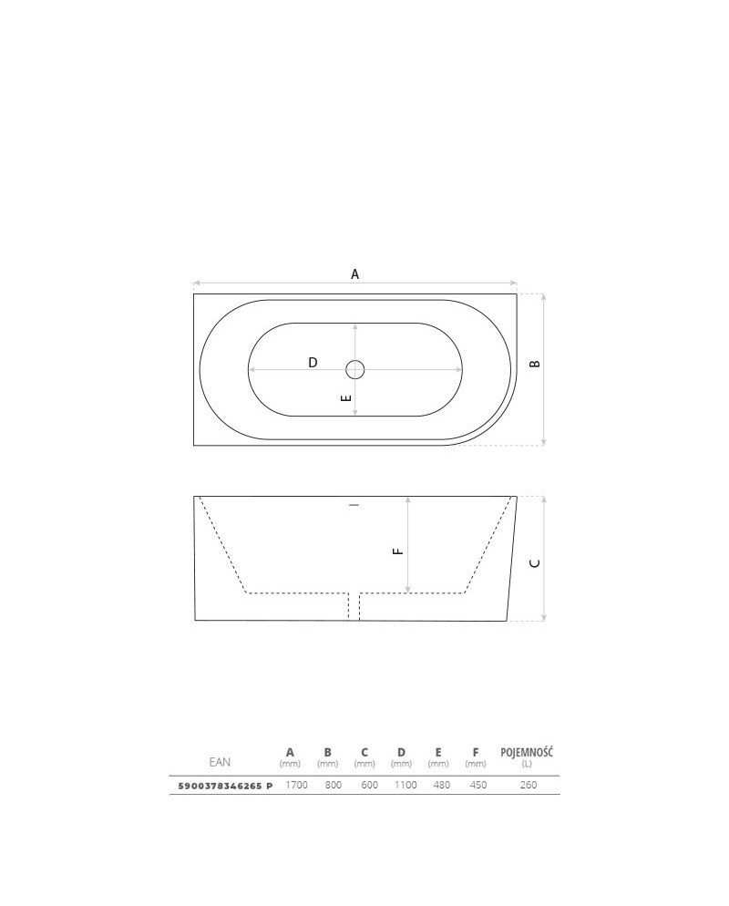 AQUALINE TAJO szabadonálló kád, 170x80cm, akril E1980