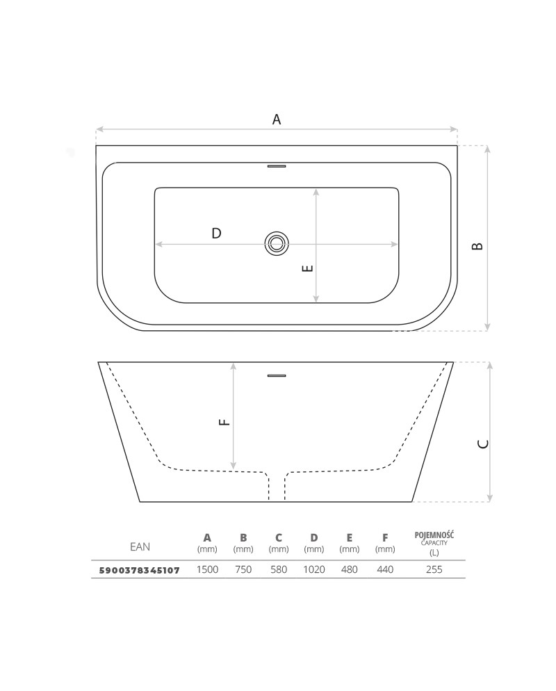 Lavita Elias szabadonálló kád falhoz 150x75 cm, fehér 5900378345107Lavita