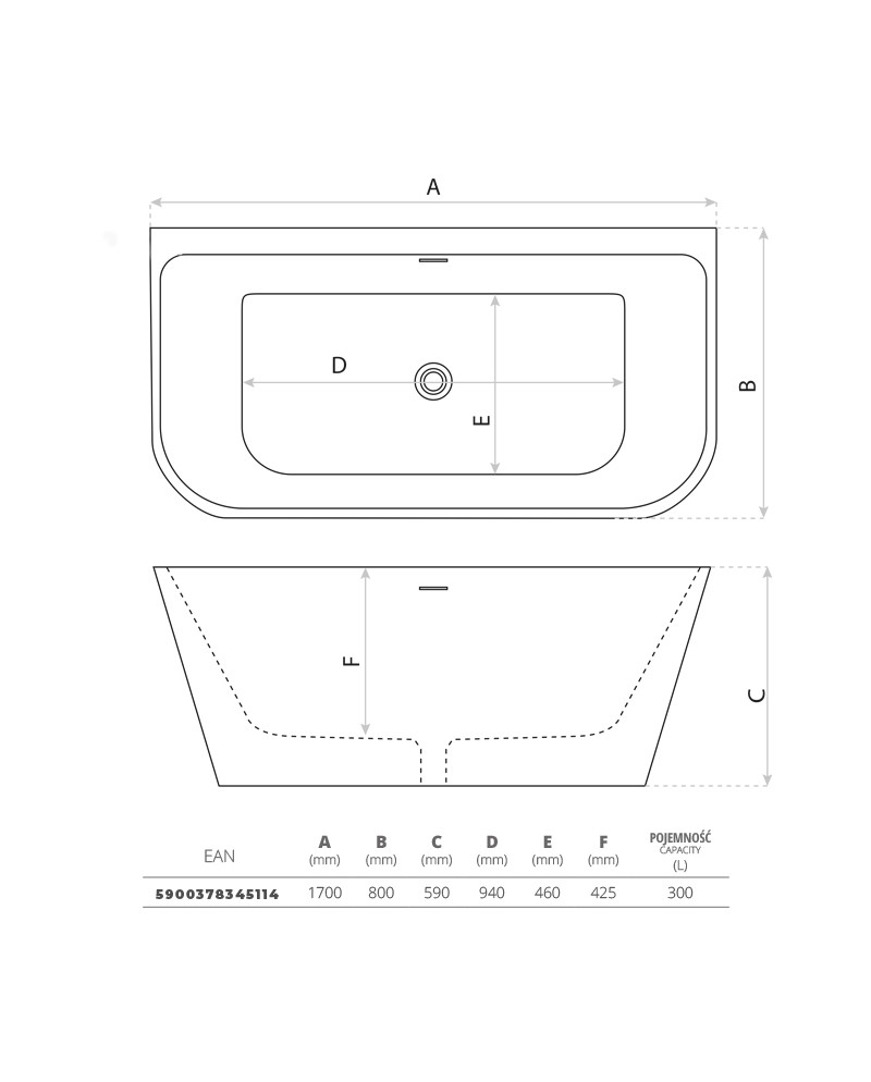 Lavita Elias szabadonálló kád falhoz 170x80 cm, fehér 5900378345114Lavita