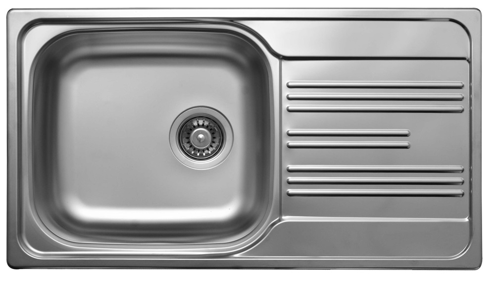 EC-198K rozsdamentes mosogató 1 medencés, csepptálcás mosogató csaplyuk nélkül 3 1/2" leeresztőszeleppel és szifonnal Méret: 780x435mm