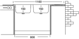 Livinox rozsdamentes mosogató EC-138K 3 1/2" lefolyó Méret: 1160x500x150 mm