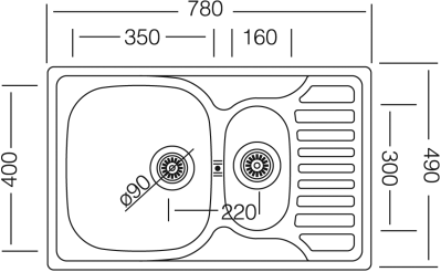 Livinox rozsdamentes mosogató EC-174K 3 1/2" lefolyó Méret: 780x490x160 mm
