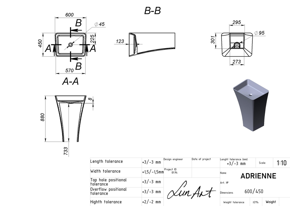 LUNART Adrienne álló mosdó, fényes fehér 5999123011046LunArt