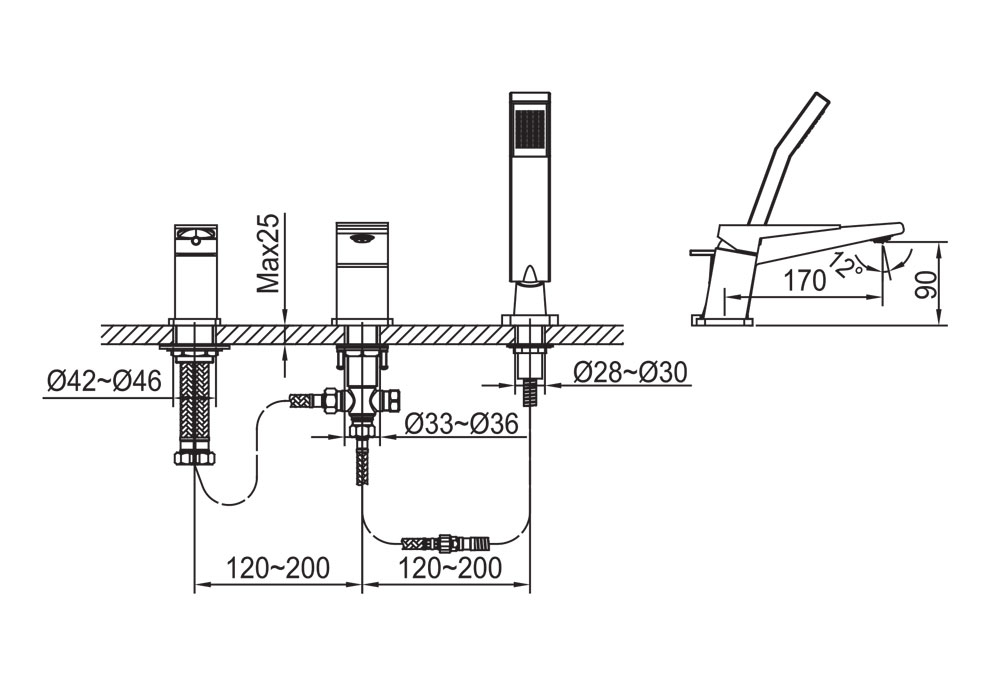 RAVAK Rosa kádperemre szerelhető vízesés csaptelep RS 025.00, X07P003