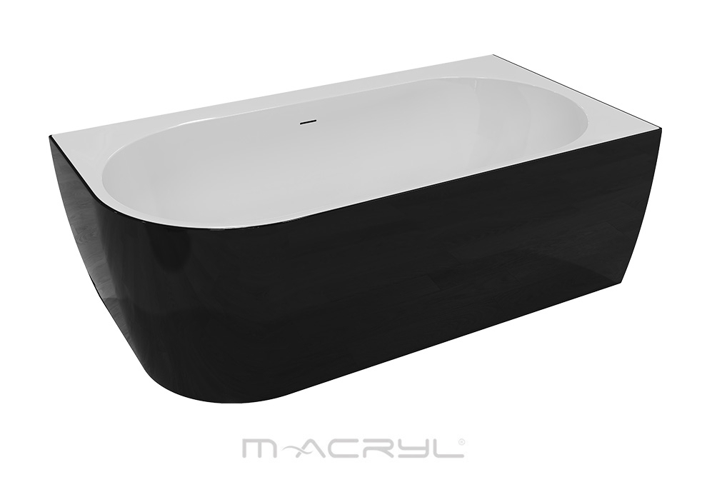 M-Acryl Harmony 159x84 cm jobbos szabadon álló akril kád króm lefolyóval, matt fekete 12588