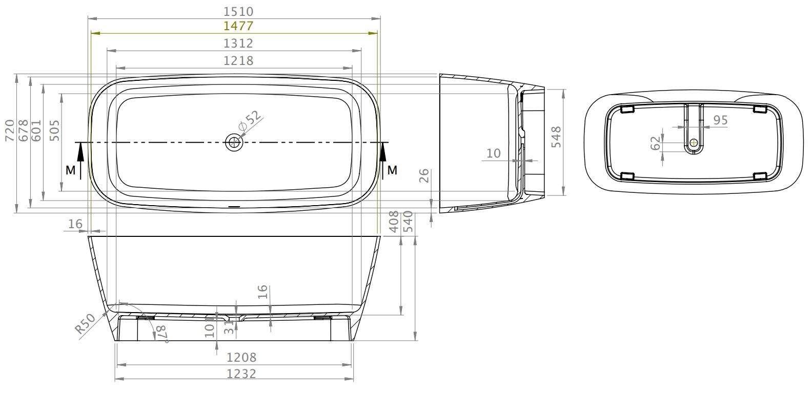 M-Acryl Jasmine 151x72 cm szabadon álló műmárvány kád, fehér 12602M-Acryl