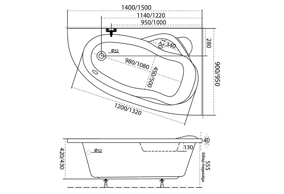 Roltechnik Harmonia 150x95 aszimmetrikus kád (jobbos, 150x95 cm, #9810000)