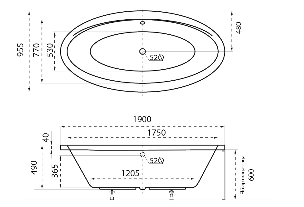 M-Acryl Oval 190x95 cm-es akril kád kádlábbal 12461M-Acryl