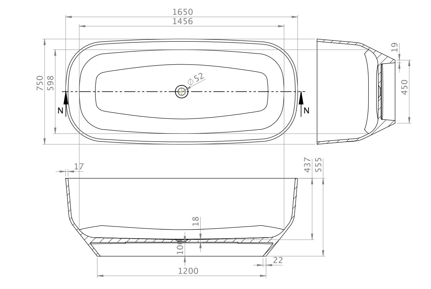 AQUALINE TAJO szabadonálló kád, 170x80cm, akril E1980