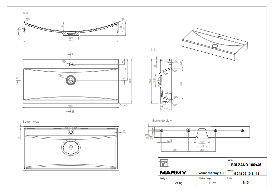 Marmy BOLZANO 100x46 cm mosdó, fehér 6 229 51 10 11 18Marmy