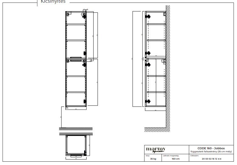 Marmy CODE 35x35x160 JOBBOS függesztett faliszekrény, 2 ajtó, laminált Dark Taupe 20 50 02 16 12 74Marmy