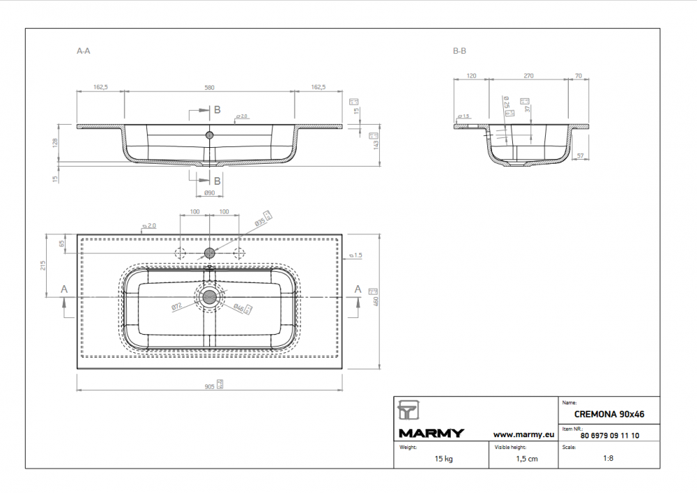 Marmy CREMONA 90x46 öntött márvány mosdó 80 6979 09 11 10Marmy