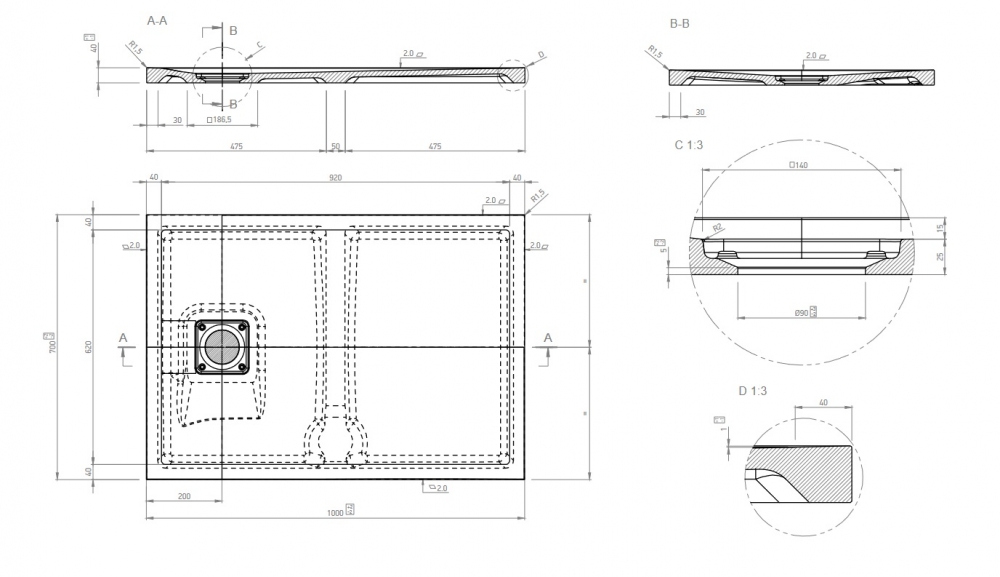 Roltechnik Flat Kvadro téglalap alakú zuhanytálca (80x90 cm, beépíthető, #8000161)