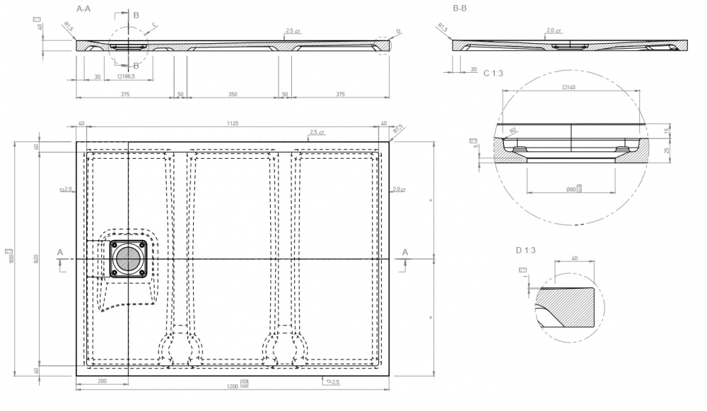 Roltechnik Flat Kvadro téglalap alakú zuhanytálca (80x90 cm, beépíthető, #8000161)