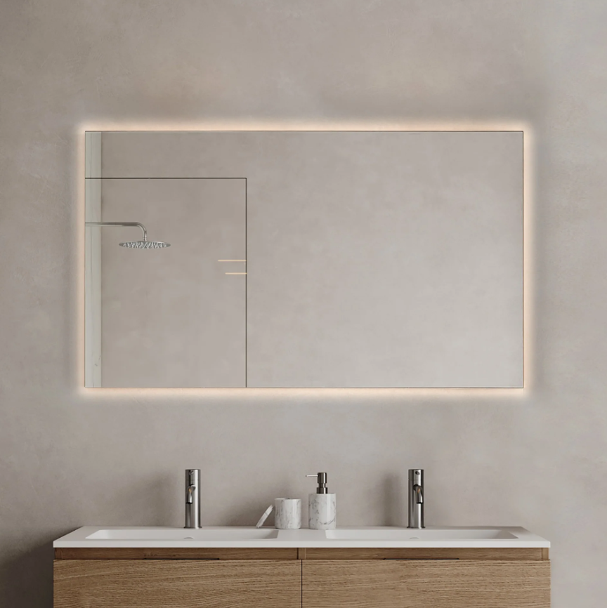 A szögletes tükör LED hátsó falvilágítással rendelkezik.