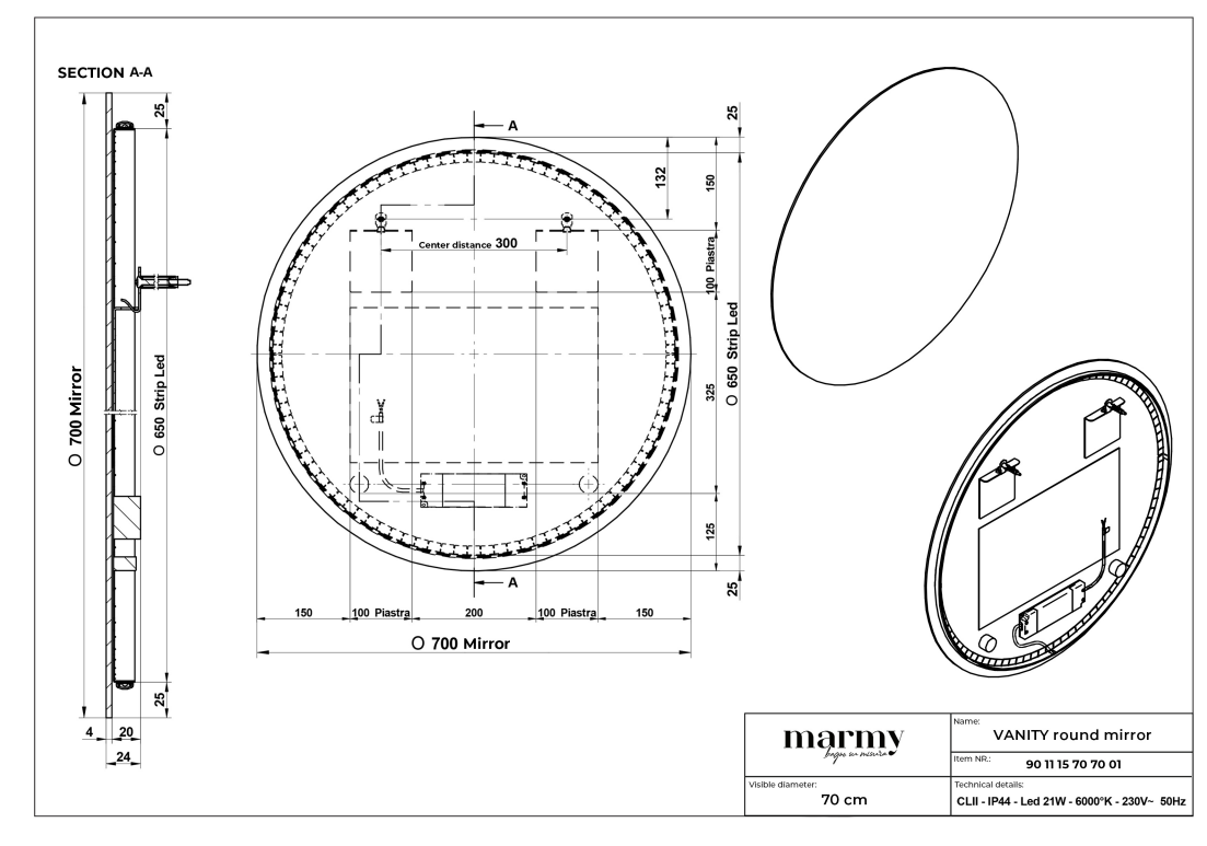 Marmy VANITY kör tükör 70 cm-es (LED 6000k, körbe hangulatvilágítás) 90 11 15 70 70 01Marmy