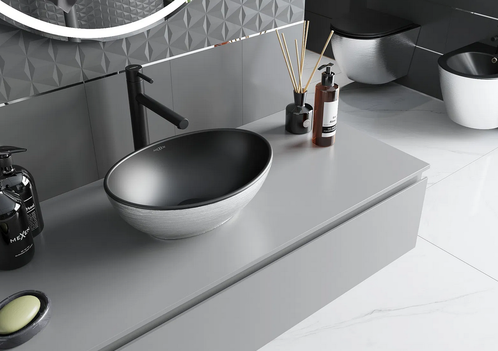 Mexen Elza pultra ültethető mosdó 40x33 cm, ezüst/fekete 21014023MEXEN