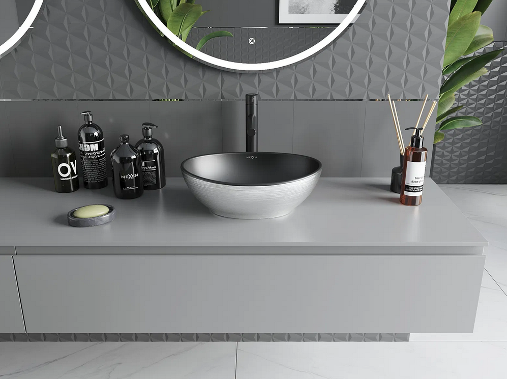 Mexen Elza pultra ültethető mosdó 40x33 cm, ezüst/fekete 21014023
