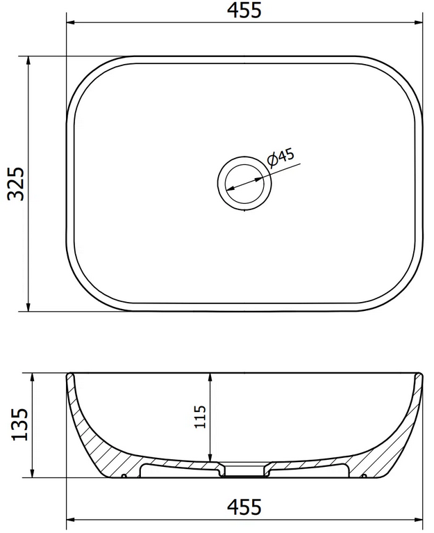 Sapho OFELIE pultra ültethető mosdó, 51,5x39 cm AR433