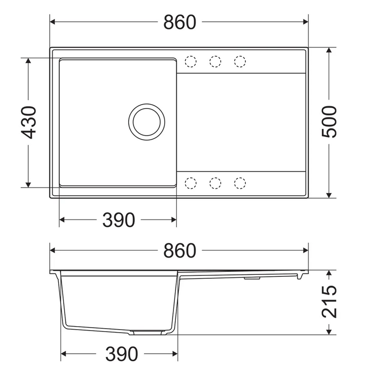 1 medence, 1 csepptálcás gránit mosogatótálca